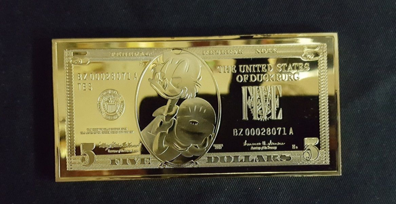OverviewWalt Disney Uncle Scrooge $5 United States of Duckburg Gold Banknote LE of 150 Bar Coin,